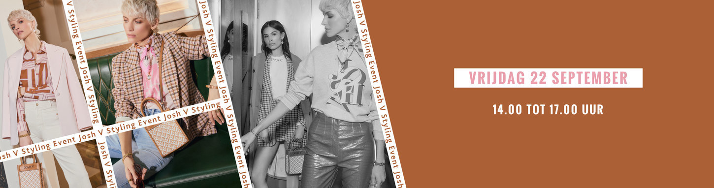 Wil jij weleens gestyled worden door Josh V herself? Kom dan naar het Josh V event op 22 september! We starten deze middag gezamenlijk om 14.00 uur met een uitleg van Josh over haar nieuwste najaarscollectie. Samen met stylisten Merel en Nadia helpt Josh je hierna bij het stylen van jouw nieuwe look. Ook krijg je deze dag een toffe Josh Vgoodiebag mee naar huis. Shop je een item uit de collectie, dan maak je bovendien kans op een complete outfit! Ben jij er bij?